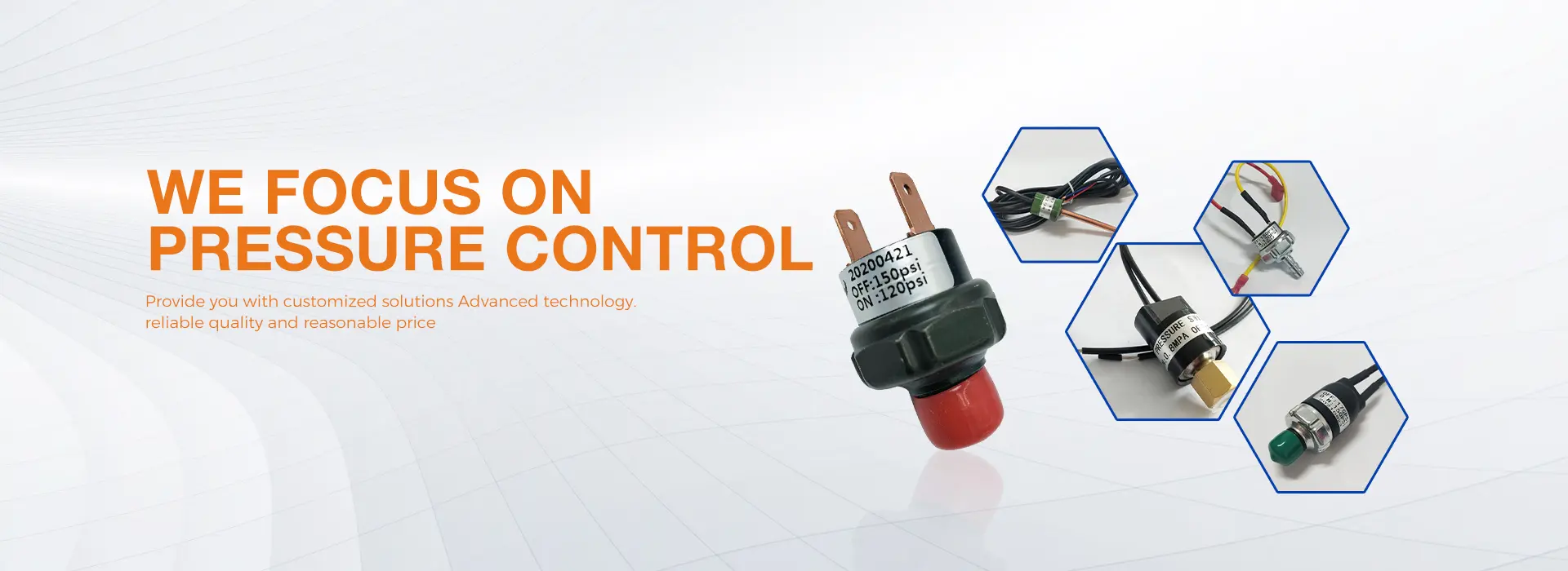 We are committed to the production and development of various pressure switches and sensors, which are widely used in various hydraulic, pneumatic and oil pressure equipment,Including automotive systems, air conditioning and refrigeration systems, air energy heat pumps, horns, compressors, air compressors, lubrication pumps, steam generators, wall-hung boiler water heaters, fire extinguishing systems, electric car brake assist systems, CNC lathes, engineering machinery and various Kinds of air pumps, water pumps, oil pumps, etc.Product performance is diversified, including vacuum negative pressure switch , high pressure switch, low pressure switch, adjustable pressure switch, vacuum transducer,hydraulic pressure sensor,gas pressure sensor etc. We also support the development and customization of new products.
